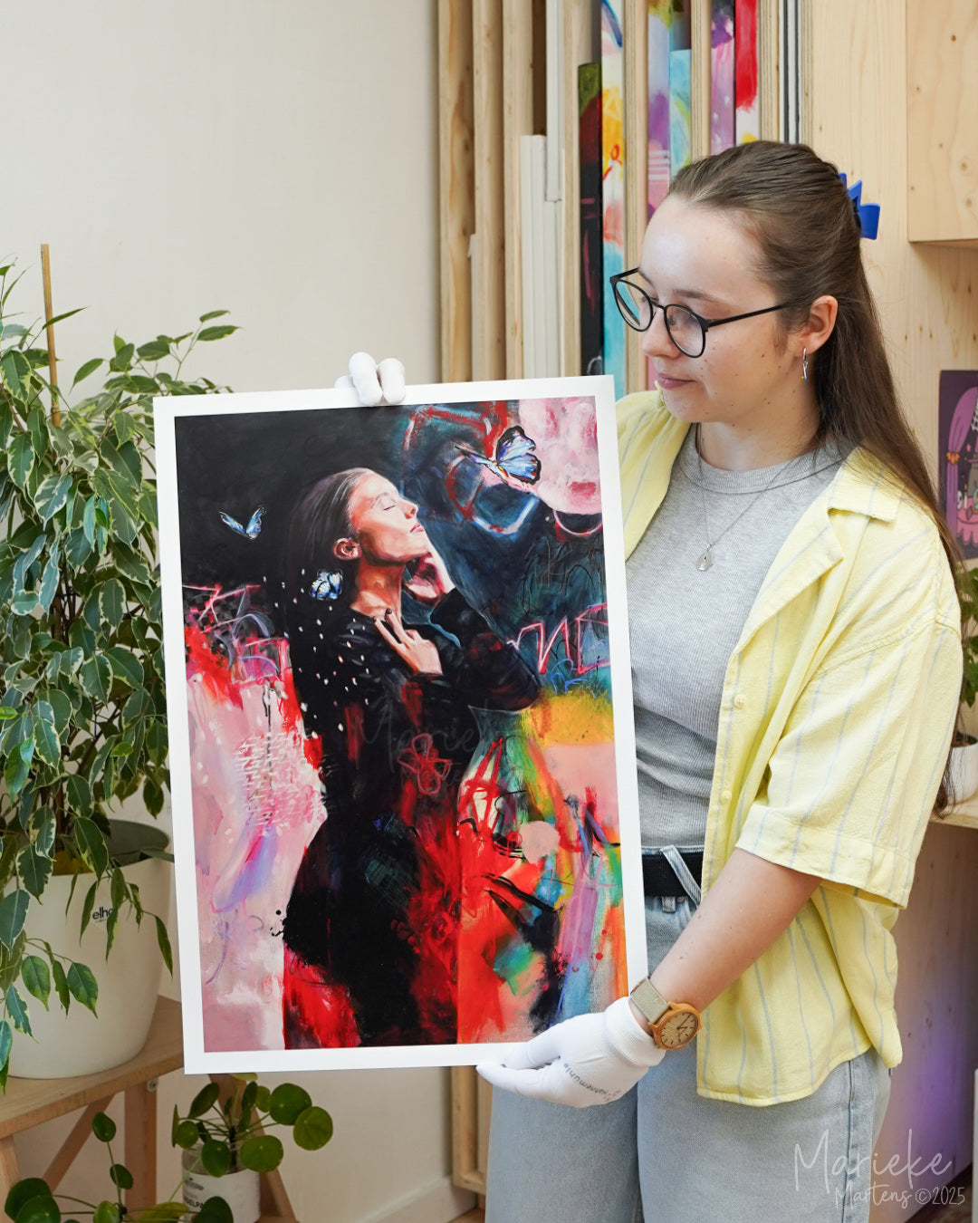 Wij doen alles in eigen huis – van het digitaliseren van het schilderij tot het printen, snijden en verzenden. Met behulp van een fine art printer met een groot kleurenbereik en archiefinkten op semi-glanzend, zuurvrij papier, garanderen wij de hoogste kwaliteit.