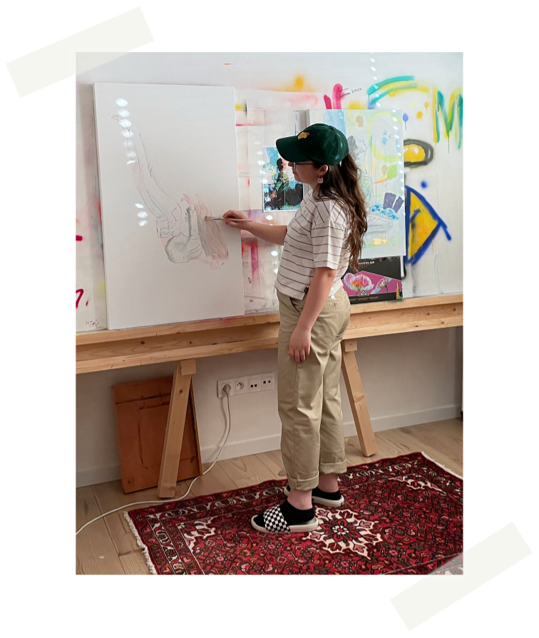Always trying to find interesting ways to make different materials come together and enhance each other, I spend my days experimenting with markers, inks, spray paints, acrylic paints, and textures.