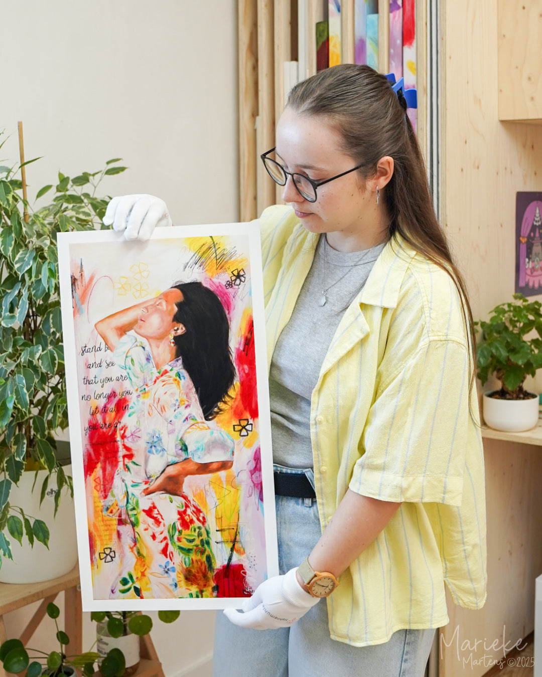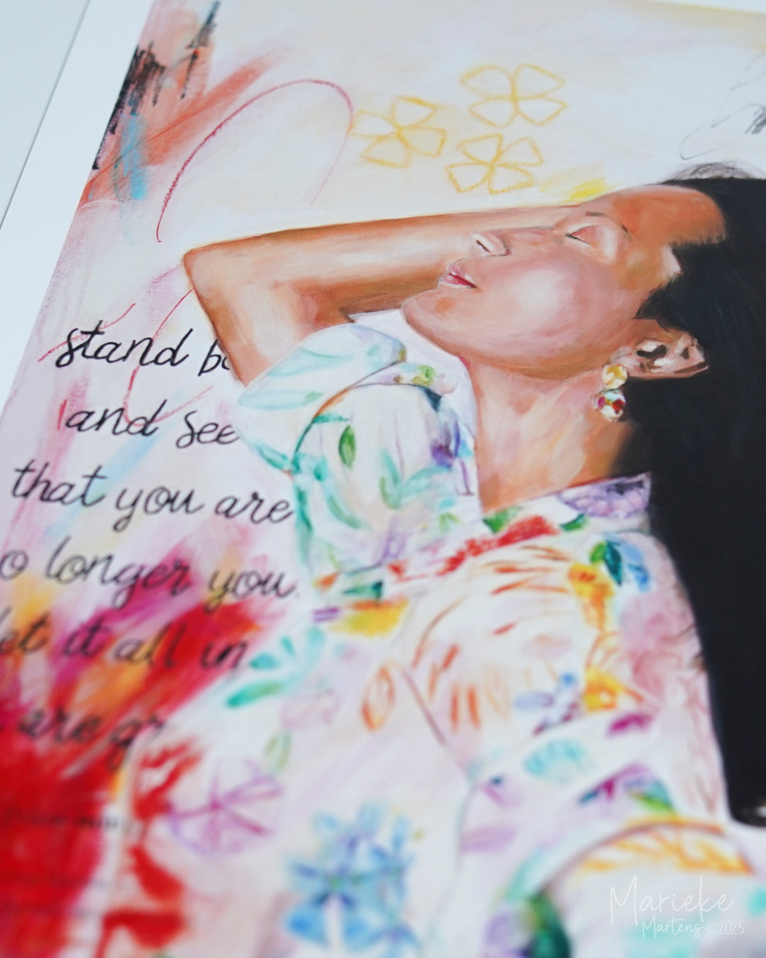 That is when I started to paint the person I believed I could be. In this collection I want to share with you how I fought to heal, how I created strength and found peace for myself. Peace in a world that isn’t perfect and where life has its ups and downs and where I learned to love myself.
